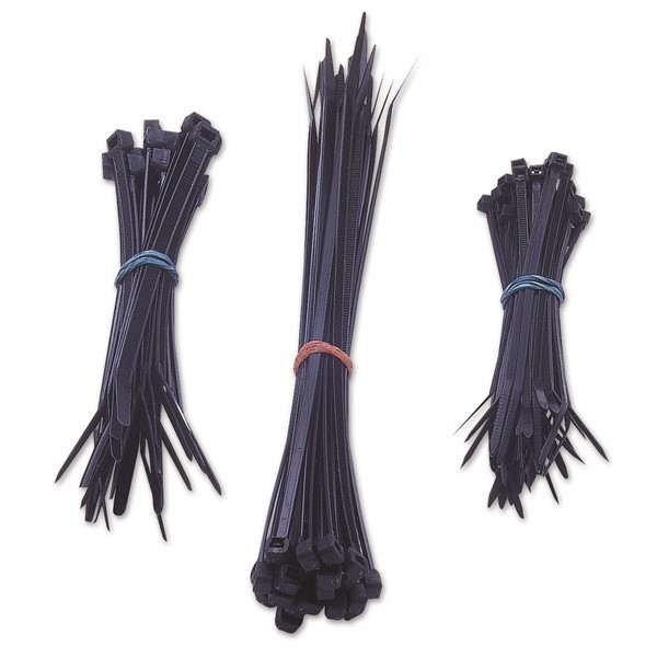 Cable Ties – Standard – Black – 3 Assorted Sizes – Pack Of 75
