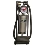 - This deluxe 100PSI double barrel foot pump is designed to provide you with a long lasting performance